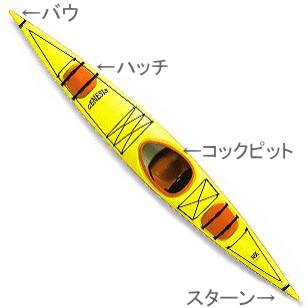 カヤック全体を「ハル」、上を「デッキ」と言います。